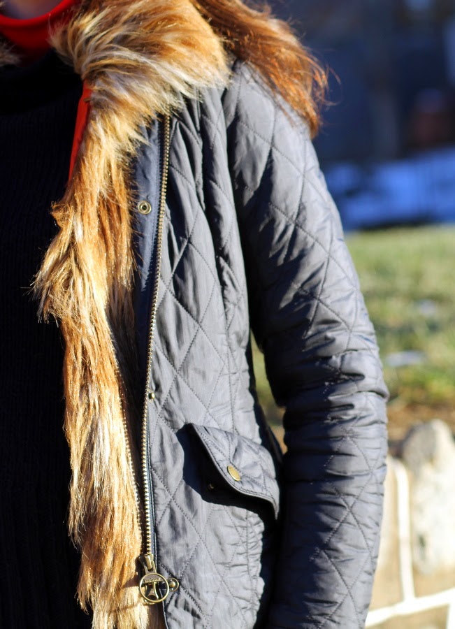 Jacket: Barbour; Sweater: Zara (last season); Turtleneck: Lands' End; Jeans: J. Crew Factory; Boots: Timberland; Bag: Longchamp; Earrings: Asos (sold out, similar); Shades: Ray Ban